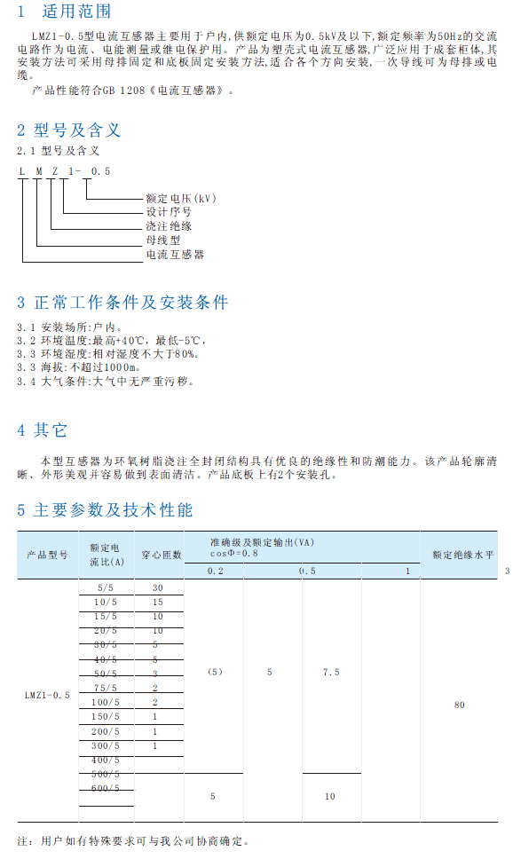 LMZ1-0.5型电流互感器