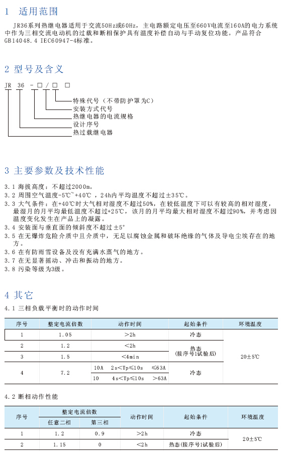 JR36系列热继电器